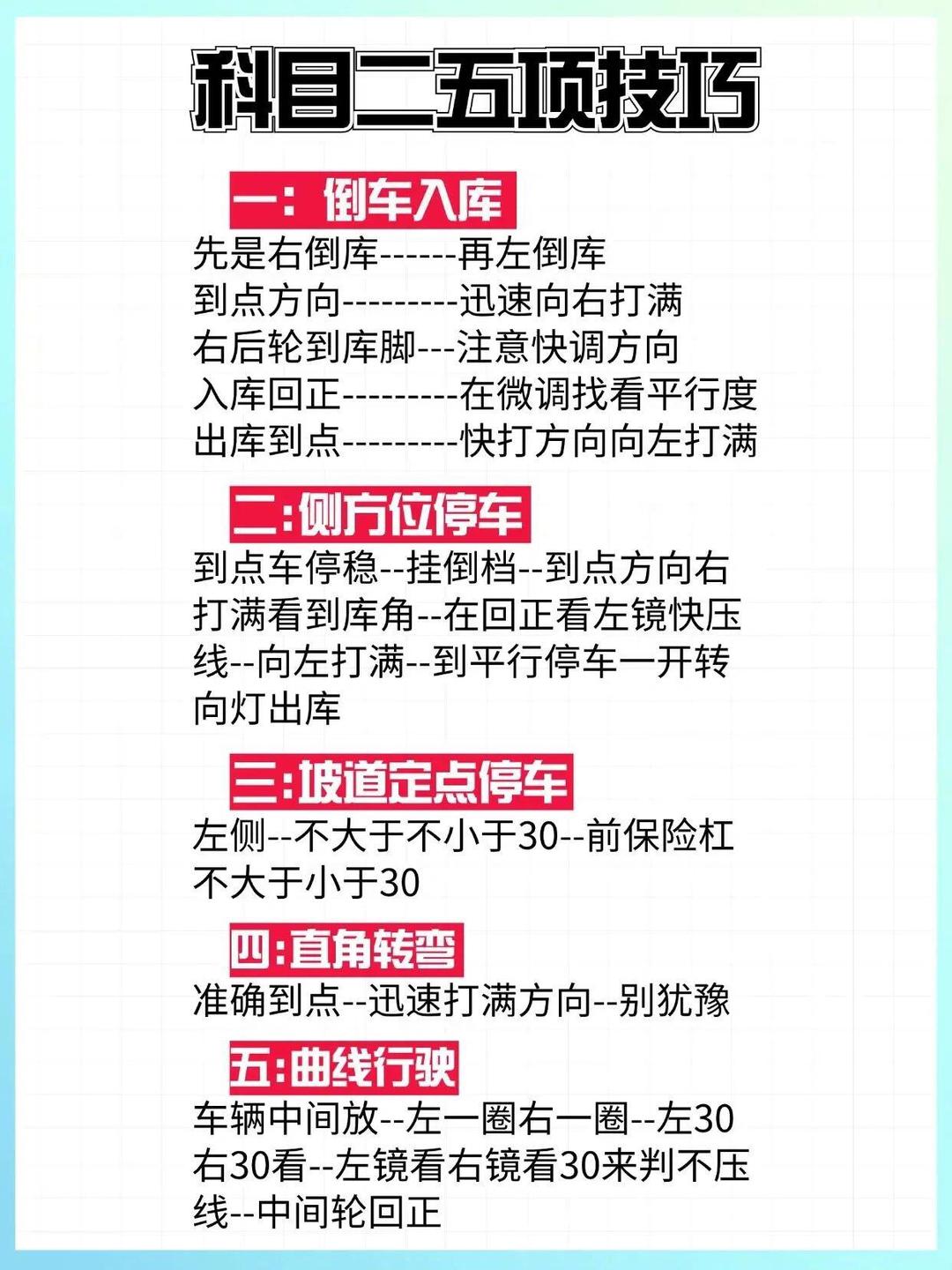 补考前首先要做的就是总结刚才失败的原因。自身原因,例如太紧张忘记细节,或是点位看错了,那么第二把一定要克服这些问题。场地原因,例如侧方停车位有一个小坑导致打方向晚了,那么第二次打方向前就要有预见性。