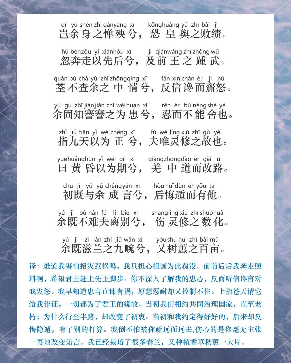 11. 长太息以掩涕兮,哀民生之多艰。——屈原《离骚》(忧国忧民)