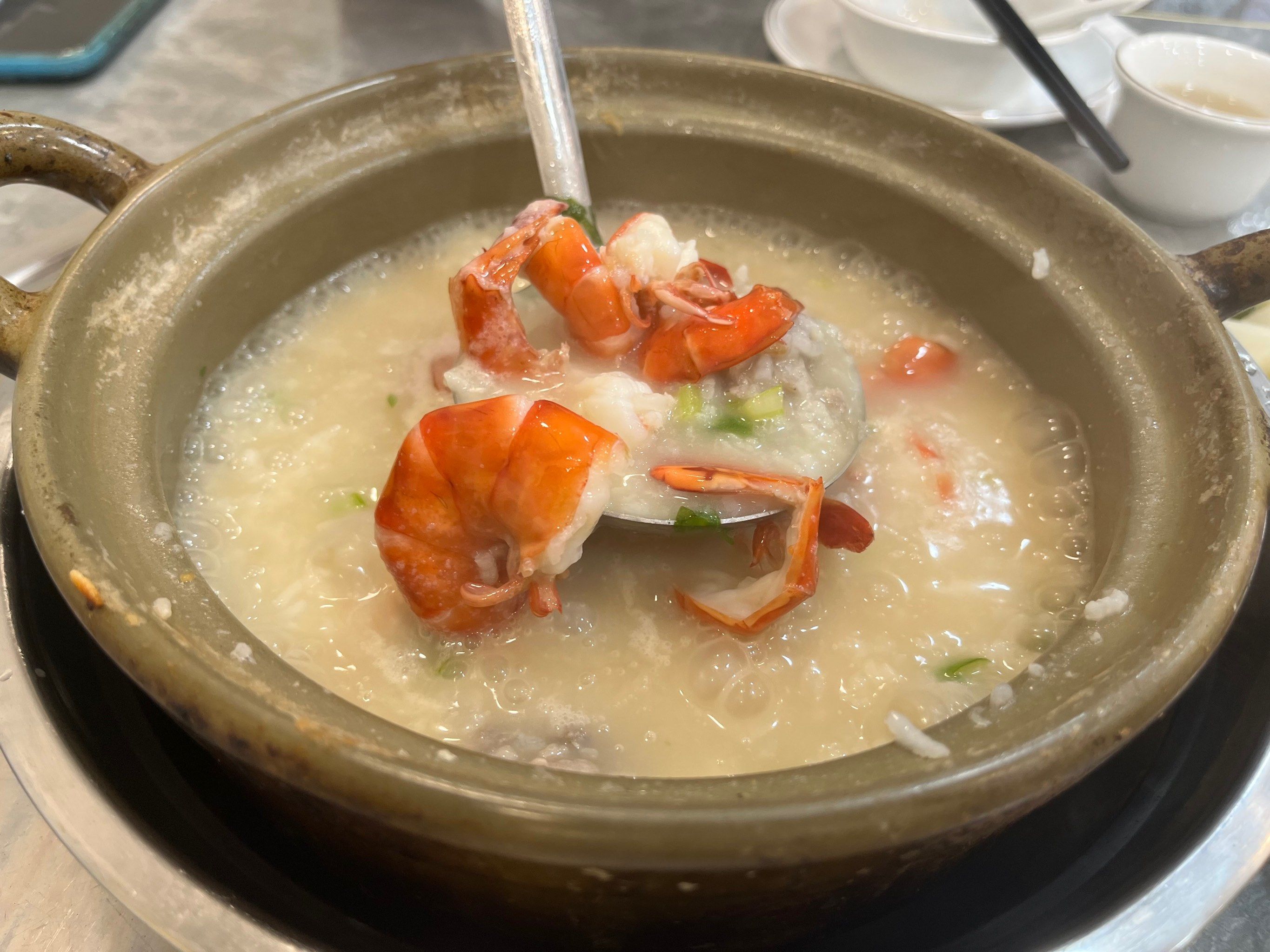 4、把海鲜倒入粥中