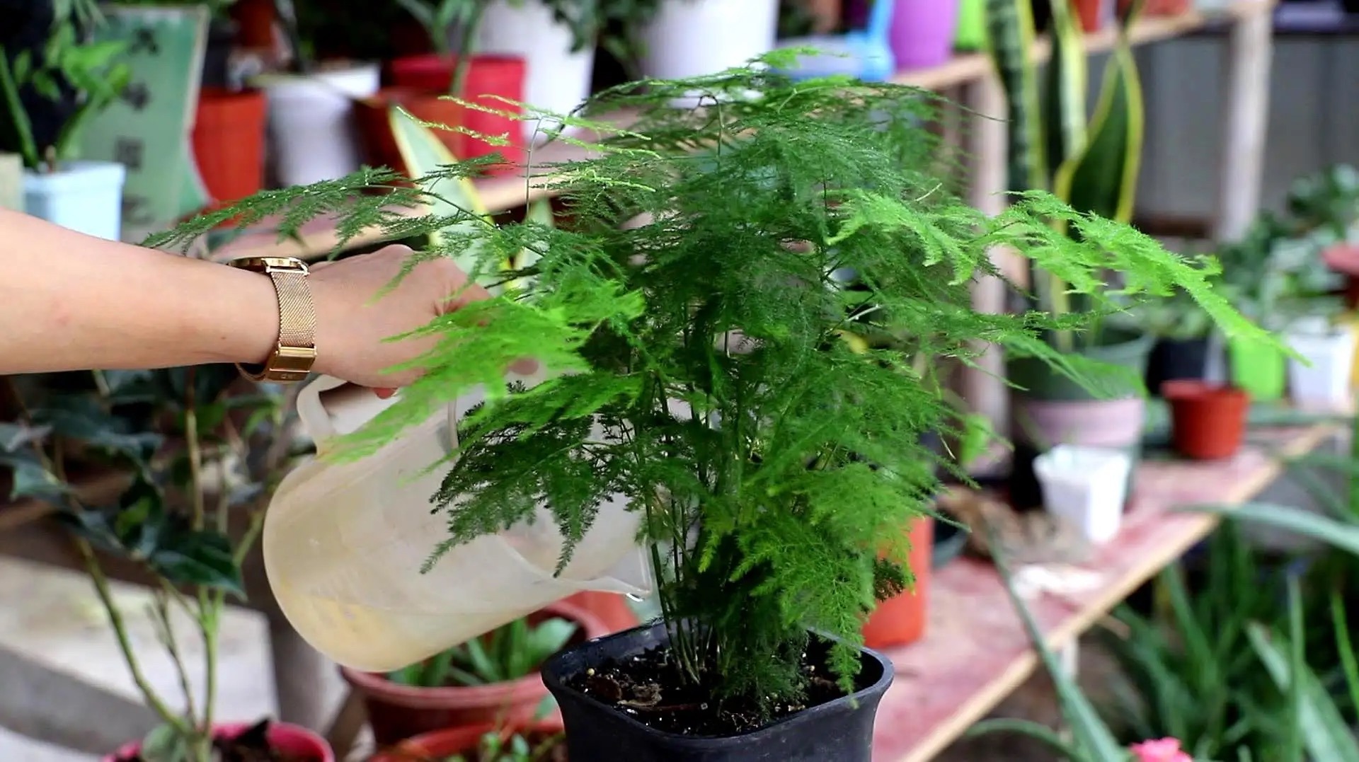 家庭中最好将文竹单独放在一个花架中,创建一个属于它的位置,这样对家人或个人都有好处。