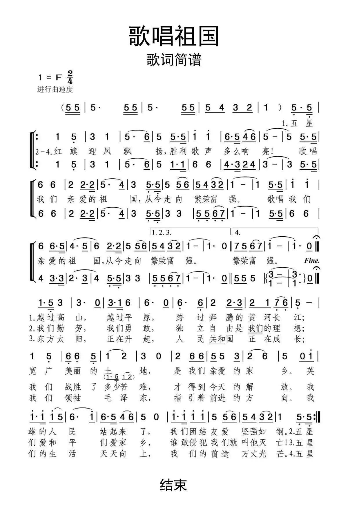 歌唱祖国原唱歌词