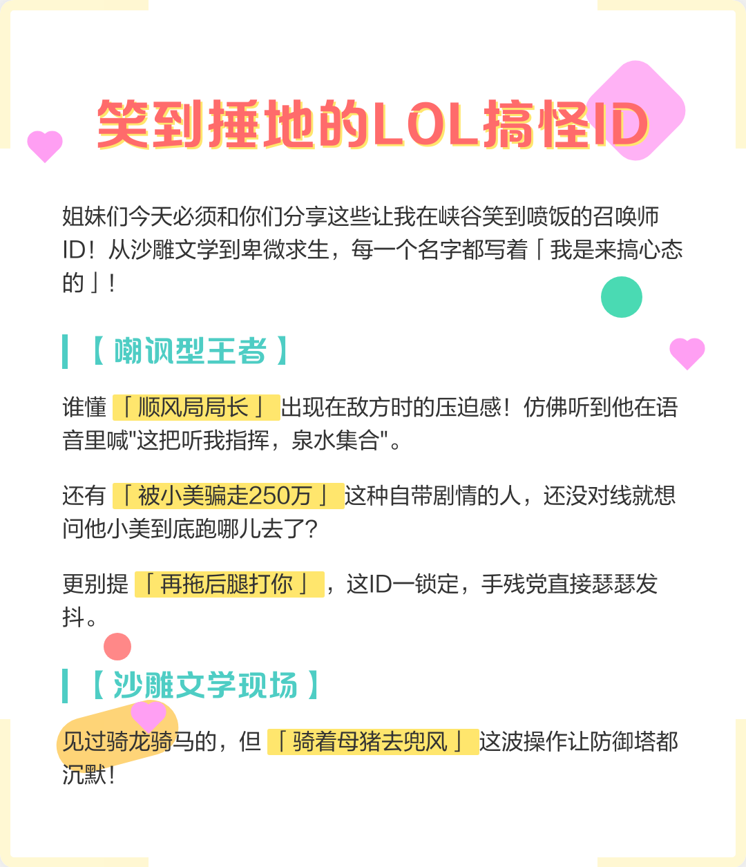 转载请注明来自夕逆IT,本文标题:《英雄联盟文艺id大全》