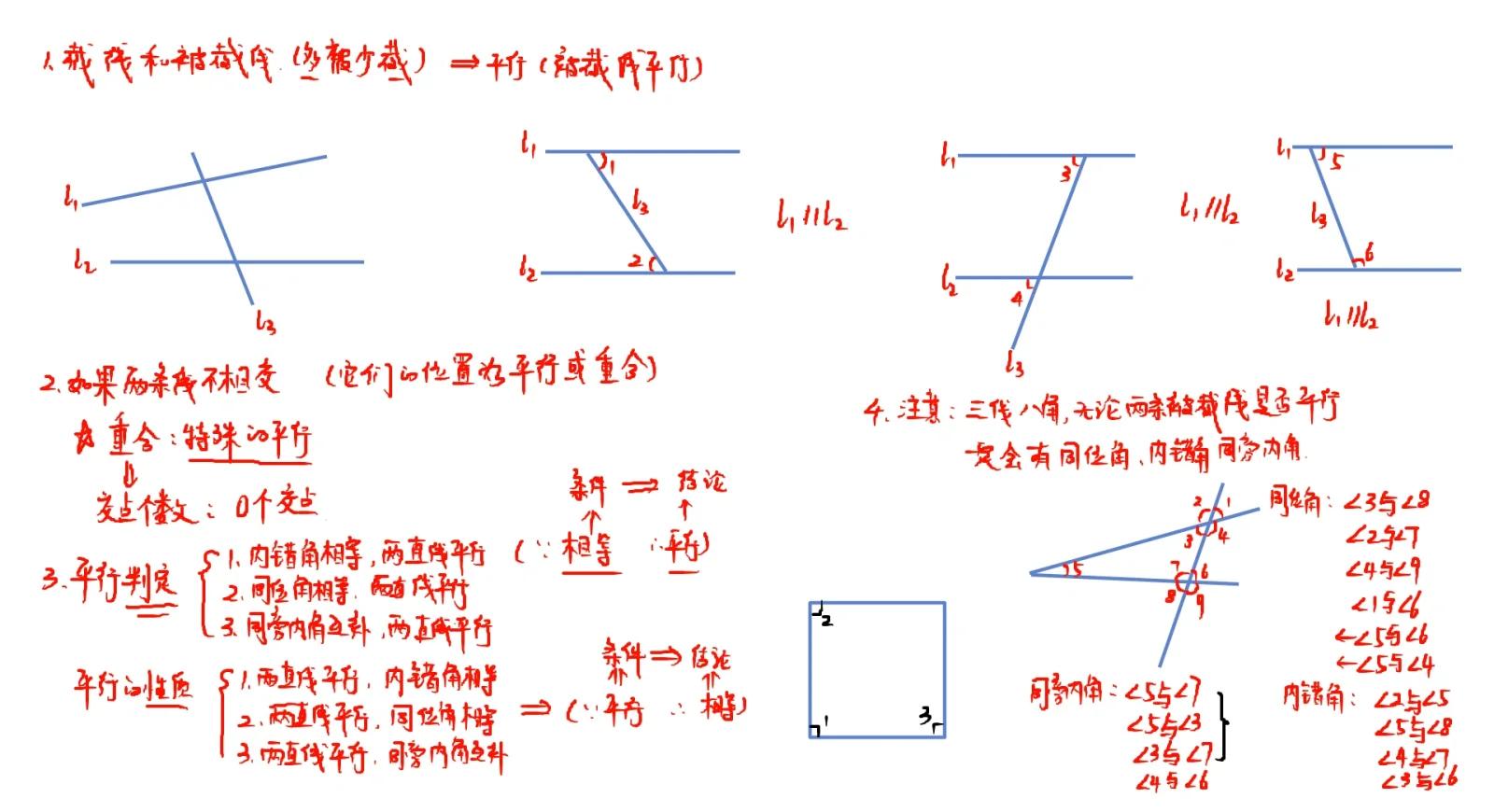 (3)同位角相等,两直线平行。
