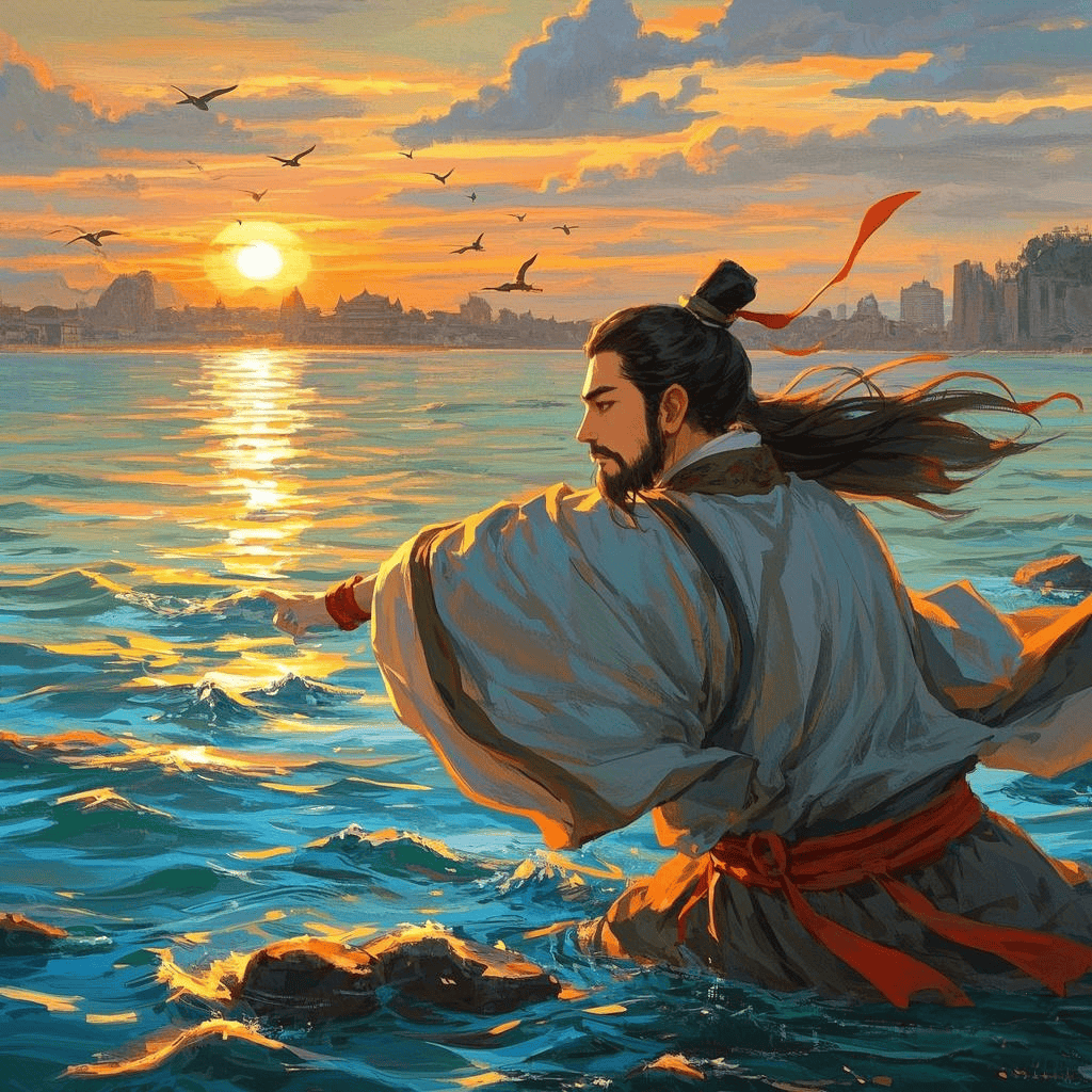 屈原终于以自己的“忿怼激发”之举,实践了他早就立下的“宁赴湘流,葬于江鱼之腹中,安能以皓皓之白,而蒙世俗之尘埃乎”(《渔父》)的誓言。这赴身江涛的悲壮音响,从此成为屈原抗争专制黑暗的生命之绝唱,成为屈原独立价格精神的浩然迸发,而久久地回荡在数千年历史的长河之中。