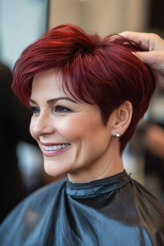 4.▼短发染发:虽然已经有了一定年纪,但染发非常减龄,一款咖啡色的短发会让你看起来更年轻。